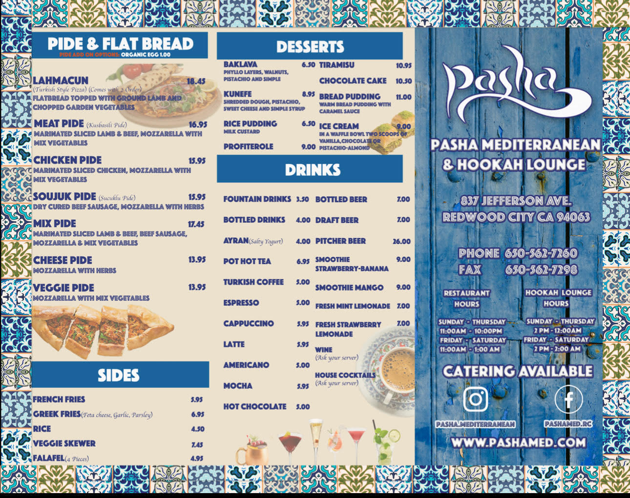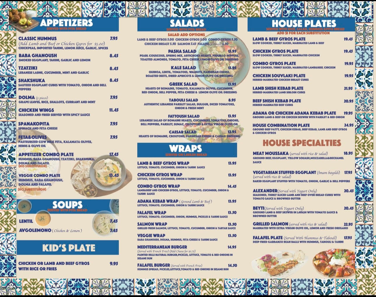 A modern, trendy Mediterranean eatery and hookah lounge with a full bar and house cocktails. Indoor and outdoor dining available with a spacious, vibrant patio for smoking. Enjoy good food, a good drink and good hookah all in one place.